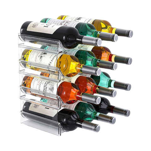 Porte-bouteilles en plastique durable moderne à 4 niveaux et 12 conteneurs empilables pour bouteilles d'eau et bouteilles de vin pour comptoirs de cuisine