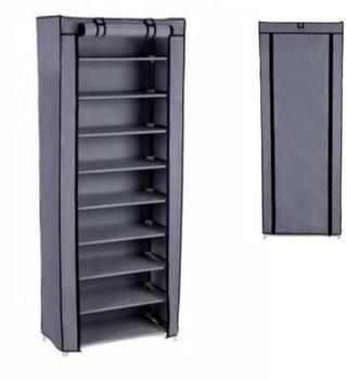 ชั้นวางรองเท้าสีม่วง9ชั้นเหล็กและพลาสติกโลหะพร้อมผ้านอนวูฟเวนที่จัดเก็บแบบพกพากันฝุ่นสำหรับห้องนอน